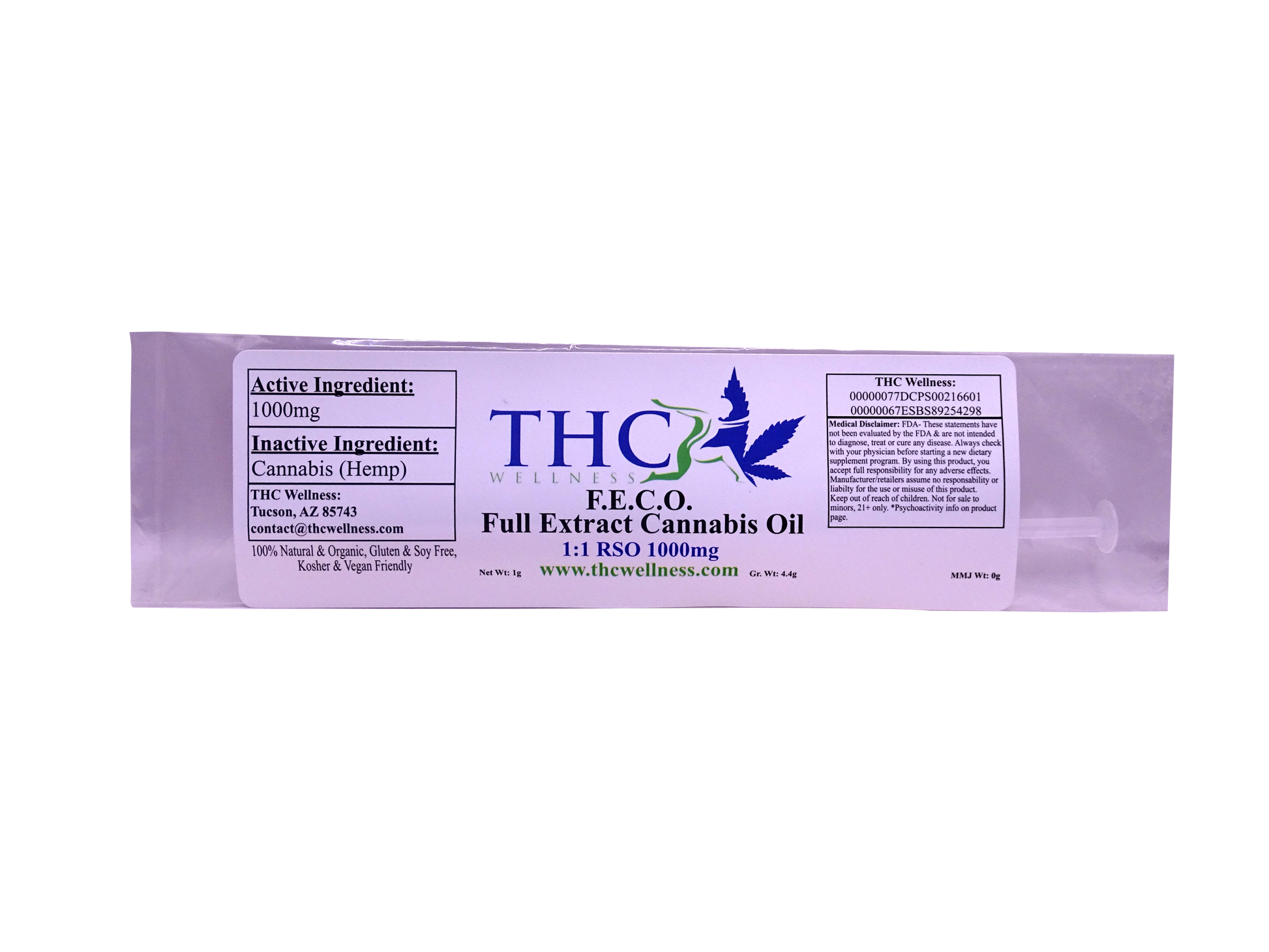 Our THC Wellness F.E.C.O. 1:1 is similar to the commonly known Rick Simpson Oil (RSO), but it is exclusively extracted from the flower of the cannabis plant. This method yields a highly effective product with elevated levels of cannabinoids, fully harnessing the plant's integrity, including its fatty acids and terpenes. As a result, our product is significantly more potent than traditional RSO in addressing inflammation, insomnia, fatigue, and other severe ailments and conditions. This product is extracted using Co2 free of alcohol and other solvents and undergoes our Chief Scientist's proprietary formulation.